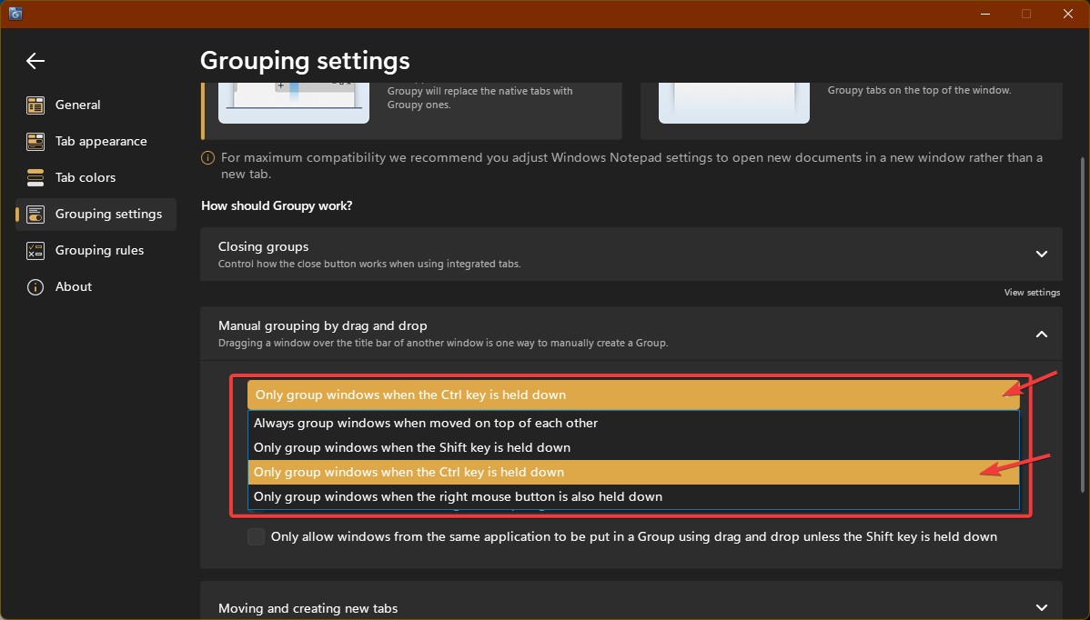 hey there, this has been happening for some time, i recall after one of the updates. i have the box checked for grouping identical windows together but the problem is its grouping everything together if it gets close to it. for ex.. if my outlook email gets close to my spreadsheets, they group it together. this used to not happen.